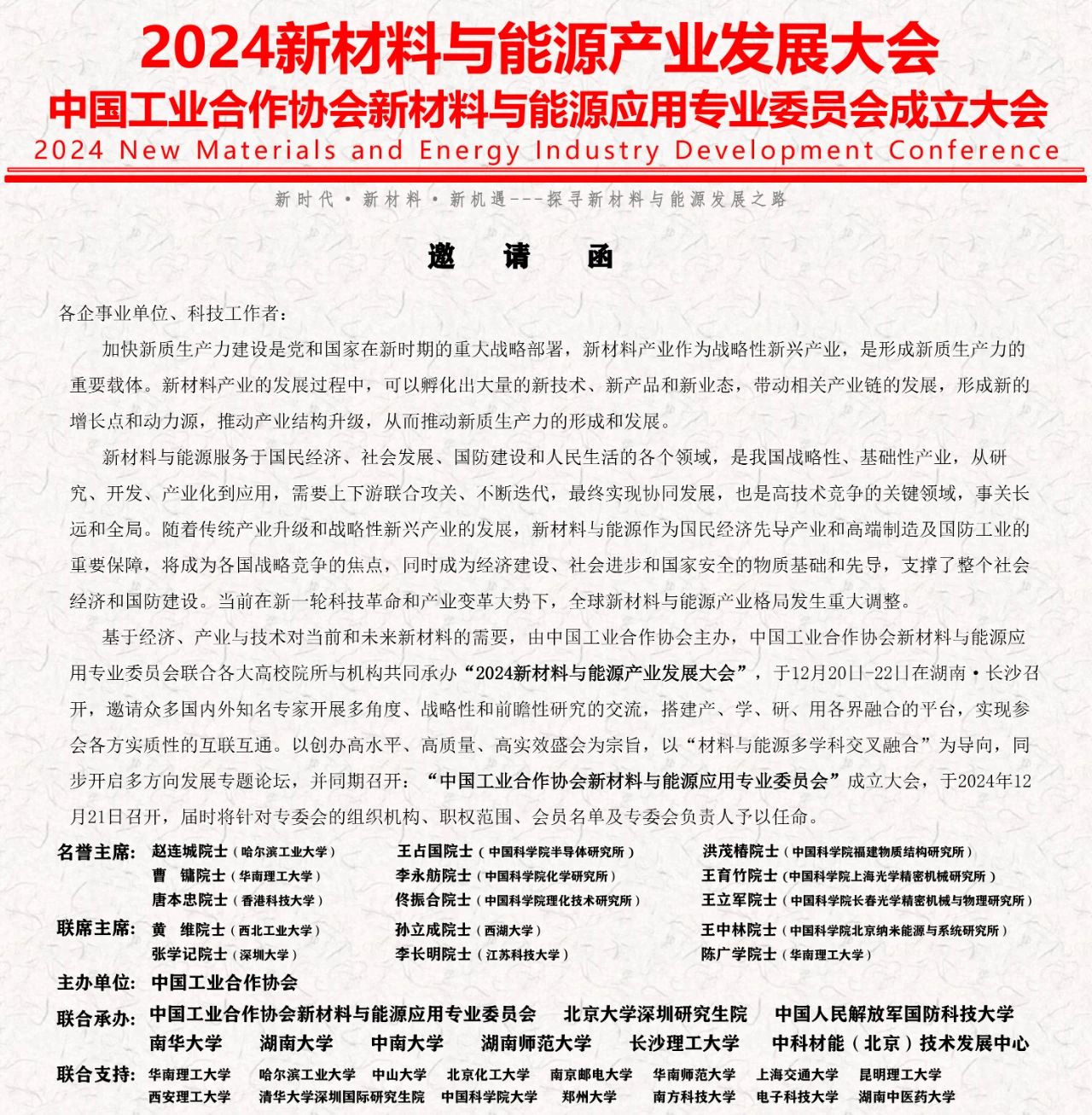 【行業會議】2024新材料與能源產業發展大會會議通知