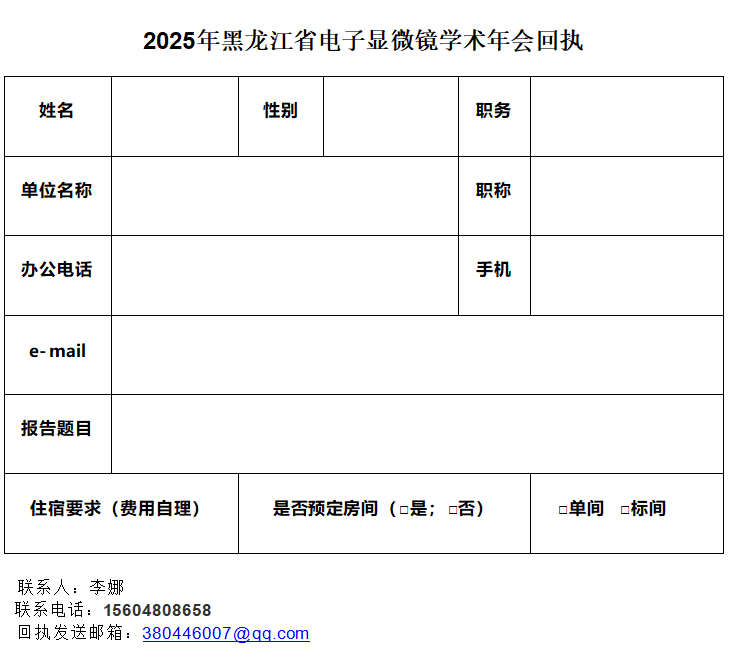 2025年黑龍江省 電子顯微鏡年會 ——第二輪通知—— 為推動掃描電鏡、雙束電鏡、透射電鏡及原位系統等在我省材料、生物、化工等學科領域的技術應用與發展,同時增進本領域各行業眾多用戶的交流與合作,達成我省電鏡技術科技人員的信息共享,提升我省電鏡技術科技人員在該領域的專業技術能力與應用水平,黑龍江省電子顯微鏡年會擬定于2025年12月12日召開。 會議將邀請我省本領域知名科學家、研究學者和工程師就電子顯微鏡技術及其在材料科學、生命科學、物理學、化學化工、環境科學等領域中的基礎研究和應用研究,以及電鏡及其它顯微學儀器的使用、改進與維修經驗等最新進展做大會報告。同時,會議還將邀請設備相關廠商做電鏡及其相關設備的最新發展介紹和產品展示。 一、主辦單位 黑龍江省物理學會電子顯微鏡專業委員會 二、協辦單位 哈爾濱工業大學 哈爾濱工程大學 哈爾濱理工大學 哈爾濱紫貝科技有限公司 黑龍江省全慧科技有限公司 三、會議主要內容 1、透射電鏡、掃描電鏡、雙束電鏡及原位系統等在相關學科領域的應用; 2、電鏡及相關儀器的使用、改進與維修經驗交流; 3、電鏡、制樣及相關儀器、耗材廠商的最新產品介紹。 四、會議日程安排(2025年12月11日~12月12日) 會議地點(哈爾濱市和興路81號美居酒店),并請各位老師、同學、廠商把參會回執發至: 380446007@qq.com 五、會議費 本次會議不收取會議費。食宿自理。 六、會務組及聯系人 魏大慶:13796665111 鄒永純:15045082576 李娜:15604808658 全慧科技:15846508138 黑龍江省物理學會電子顯微鏡專業委員會 2025年10月21日