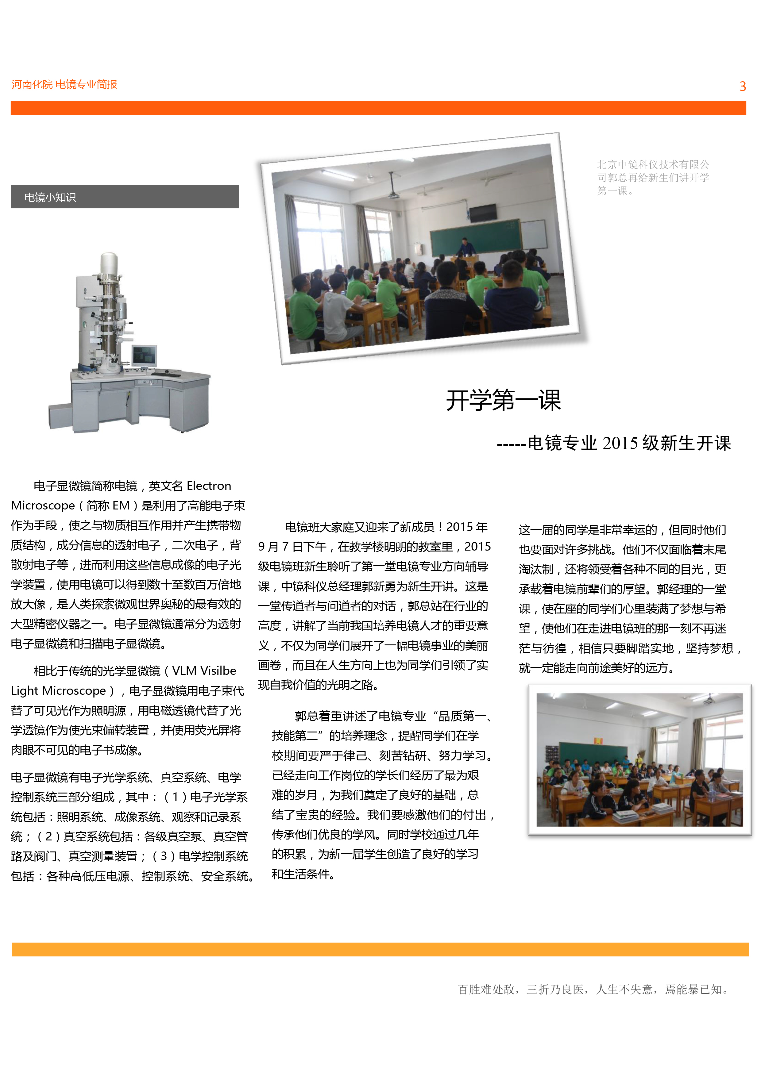 中鏡科儀與河南化工技師學院校企合作電鏡專業簡報2015年10月第一期