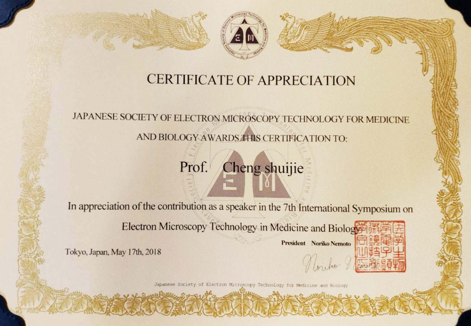 2018年5月17-18日,由日本醫學生物學電子顯微鏡技術學會(JSEMTMB)和中國河北解剖學會共同主辦的2018年第七屆國際醫學生物學電子顯微鏡研討會在日本眾議院第一議員會館成功召開。日本醫學生物學電子顯微鏡技術學會理事長根本典子教授、河北解剖學會理事長河北醫科大學張雷教授、大阪大學桑畑進教授、北京醫科大學唐軍民教授、朝日大學堀田康明教授、河北北方學院張輝教授等出席了此次會議。本次會議代表100余人,其中中國代表22人。中國電子顯微鏡博物館應邀出席本次會議。 ▲會議現場 中國電子顯微鏡博物館副館長郭新勇、館長助理程書潔一行,應邀赴日本出席本次會議。程書潔作了題為《Electron Microscope Museum of China》的報告。報告中介紹了博物館的發展歷程和館內各特色展區,并講述了近年來中國電鏡技術教育的狀況,以及電鏡發展史上中日之間近幾十年來的友好合作成果。此次報告也讓更多的國際友人了解到中國不僅在經濟上發展較快,在科學文化建設方面也有了長足的發展。中國電子顯微鏡博物館是首次在國際會議上亮相,受到了國際友人的盛贊。 ▲中國電子顯微鏡博物館館長助理程書潔作報告 《Electron Microscope Museum of China》 ▲大會報告主講人致謝證書 在中日和平友好條約締結40周年之際,中國電子顯微鏡博物館派代表出席本次會議,順應了國家提倡的創新、協調、開放、共享的國際發展理念,為中日電鏡事業的共同發展發揮了積極的橋梁作用。自2016年建館以來,博物館不僅收到了國內許多高校和科研單位的捐贈的電鏡近30臺套,也收到來自英國利茲大學捐贈的透射電鏡,以及美國芝加哥大學的捐贈函。這次中國電鏡博物館主要負責人到訪日本交流,將受到更多國際友人的關注,為推動國際科技文化交流產生積極影響。 ▲中國電子顯微鏡博物館副館長郭新勇 ▲中國電子顯微鏡博物館館長助理程書潔 ▲與日本醫學生物學電鏡技術學會名譽理事長宮澤七郎教授合影 ▲與河北醫科大學宋春風教授合影 ▲中國與會代表合影 會議期間,會議代表應日本電子株式會社邀請,參觀了JEOL研發中心。了解了國際最先進的電子顯微鏡技術和日本電子顯微鏡應用的最新進展。日本電子株式會社全球銷售總監福山幸一歡迎來自中國的各位電鏡專家,并介紹了公司的研發情況,以及在中國開展的各項業務和交流合作。 ▲日本電子株式會社全球銷售總監福山幸一 ▲報告現場 ▲中國電鏡專家參觀JEOL研發中心合影 會議期間,中國電鏡博物館郭新勇副館長和助理程書潔,還參觀了日本照相機博物館,并與博物館常務理事理事谷野啟先生進行了交流,雙方同意在適當時間,兩館將開展深入的交流與合作。 ▲與照相機博物館常務理事谷先生合影 本次會議決定2020年將在中國張家口市召開《2020年第八屆國際醫學生物學電子顯微鏡研討會》,同時對來參加本次會議的各界人士表示衷心感謝! ▲中國張家口