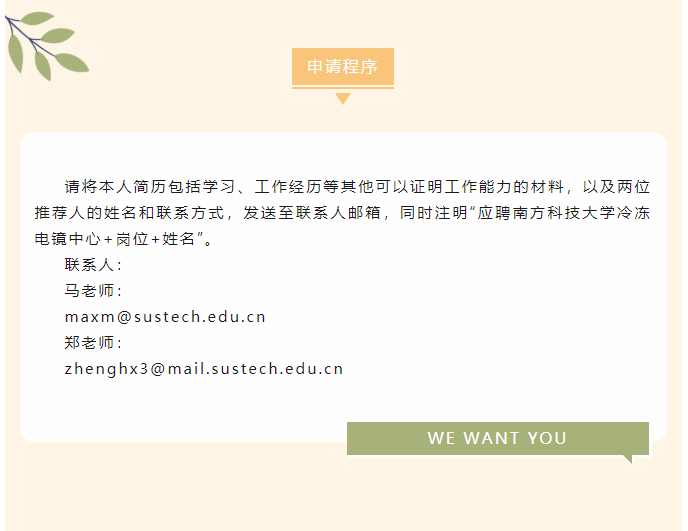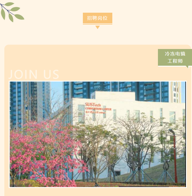 【行業招聘】誠聘英才 | 南方科技大學冷凍電鏡中心招聘啟事