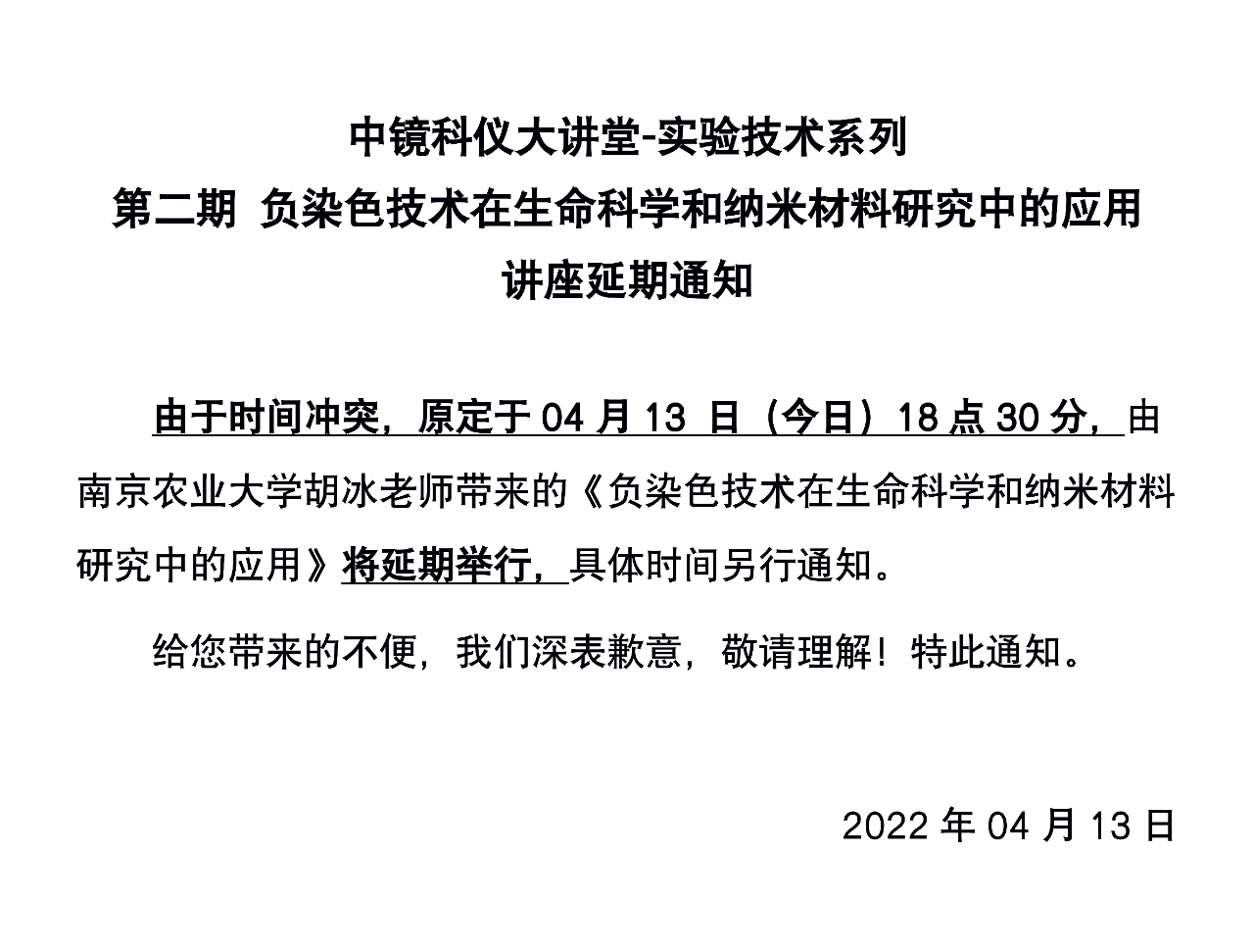 【延期通知】中鏡科儀大講堂延期通知