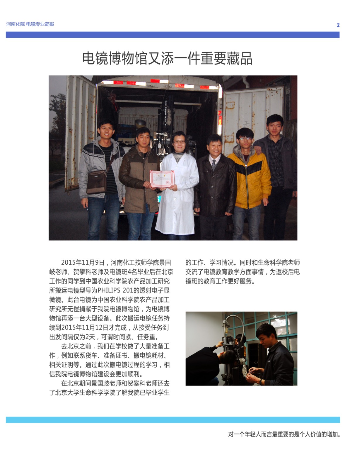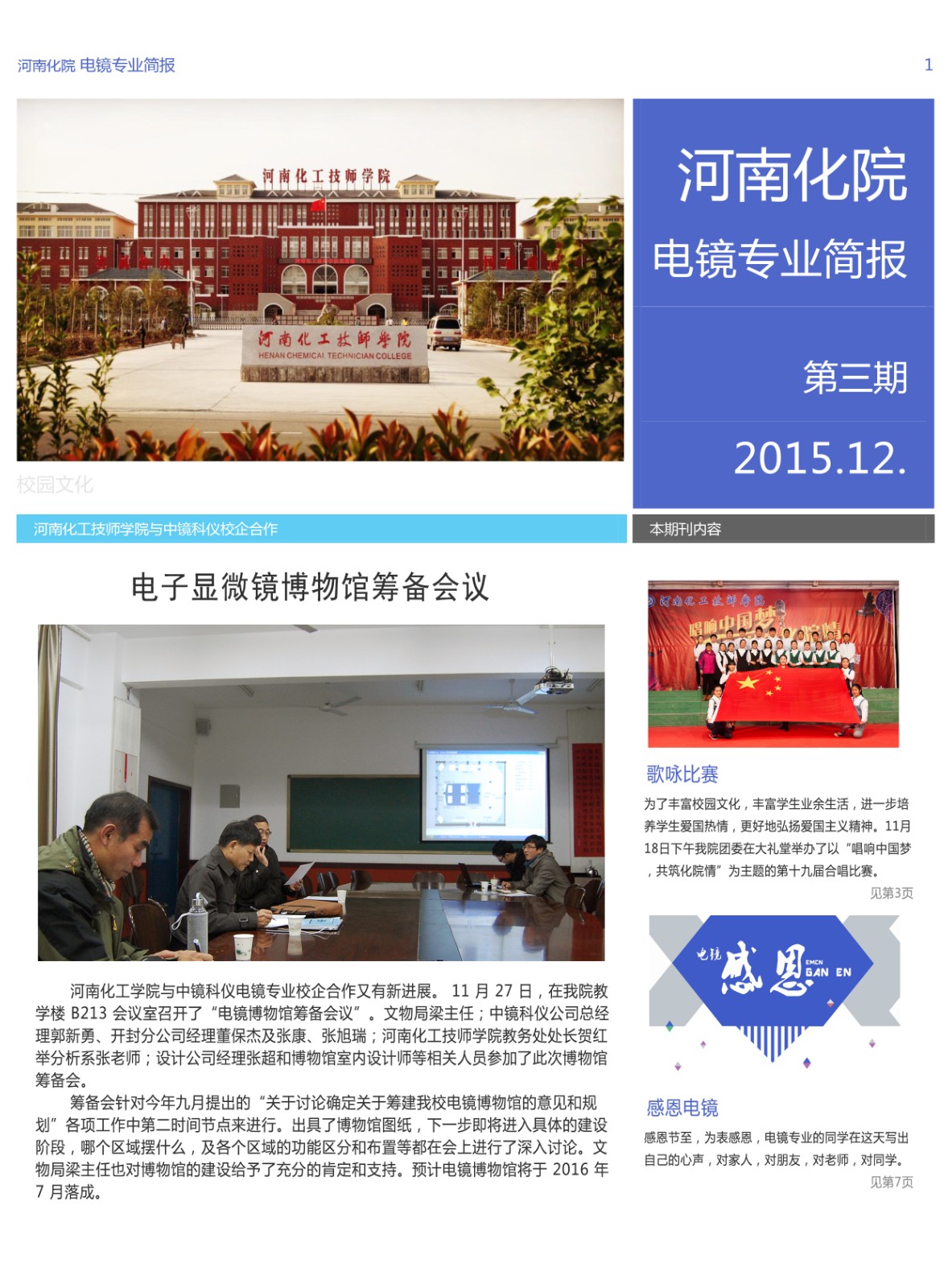 中鏡科儀與河南化工技師學院校企合作電鏡專業(yè)簡報2015年12月第三期