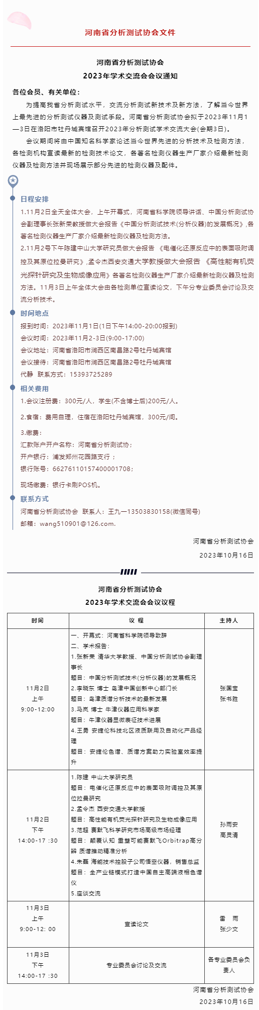 【行業會議】河南省分析測試協會2023年學術交流會會議通知