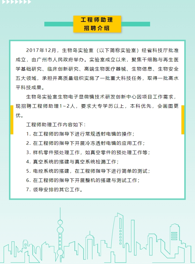 【行業(yè)招聘】生物島實(shí)驗(yàn)室招聘工程師助理