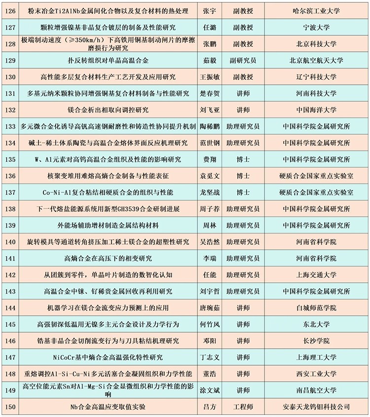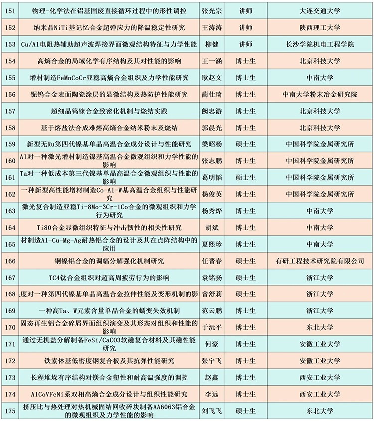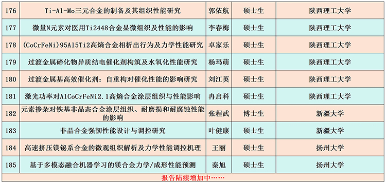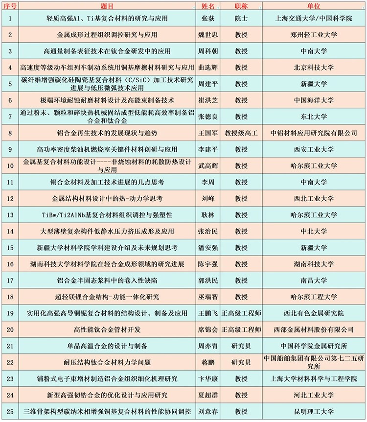 為進一步推動我國結(jié)構(gòu)材料的學(xué)術(shù)繁榮、技術(shù)創(chuàng)新和產(chǎn)業(yè)發(fā)展,促進結(jié)構(gòu)材料向高性能化、復(fù)合化、結(jié)構(gòu)功能一體化發(fā)展,加強產(chǎn)、學(xué)、研、用深度融合,交流結(jié)構(gòu)材料領(lǐng)域近年來具有創(chuàng)新性的科技及應(yīng)用成果,中冶有色技術(shù)平臺與中國有色金屬智庫、中南大學(xué)、河南省科學(xué)院、北京科技大學(xué)、河南科技大學(xué)、陜西理工大學(xué)、鄭州輕工業(yè)大學(xué)、長沙理工大學(xué)、西安工業(yè)大學(xué)、桂林理工大學(xué)、新疆大學(xué)、武漢科技大學(xué)、洛陽理工學(xué)院、廣西大學(xué)等單位定于2024年5月24-26日在湖南省長沙市,共同舉辦“2024中國結(jié)構(gòu)材料大會暨第十屆全國有色金屬結(jié)構(gòu)材料制備/加工及應(yīng)用技術(shù)交流會”,會議期間還將舉行第五屆中國結(jié)構(gòu)材料院(所)長論壇。 組織機構(gòu) 主辦單位 中冶有色技術(shù)平臺 中南大學(xué) 河南省科學(xué)院 北京科技大學(xué) 河南科技大學(xué) 陜西理工大學(xué) 鄭州輕工業(yè)大學(xué) 長沙理工大學(xué) 西安工業(yè)大學(xué) 桂林理工大學(xué) 新疆大學(xué) 武漢科技大學(xué) 洛陽理工學(xué)院 廣西大學(xué) 中國有色金屬智庫 協(xié)辦單位 中國科學(xué)院金屬研究所 承辦單位 粉末冶金國家重點實驗室 金屬基復(fù)合材料國家重點實驗室 硬質(zhì)合金國家重點實驗室 省部共建耐火材料與冶金國家重點實驗室 省部共建有色金屬先進加工與再利用國家重點實驗室 省部共建特色金屬材料與組合結(jié)構(gòu)全壽命安全國家重點實驗室 中南大學(xué)材料科學(xué)與工程學(xué)院 中南大學(xué)粉末冶金研究院 河南省科學(xué)院材料研究所 北京科技大學(xué)新材料技術(shù)研究院 河南科技大學(xué)材料科學(xué)與工程學(xué)院 陜西理工大學(xué)材料科學(xué)與工程學(xué)院 鄭州輕工業(yè)大學(xué)材料與化學(xué)工程學(xué)院 長沙理工大學(xué)材料科學(xué)與工程學(xué)院 陜西省鋁鎂輕合金復(fù)合材料工程中心 陜西省腐蝕與防護學(xué)會 桂林理工大學(xué)材料科學(xué)與工程學(xué)院 新疆大學(xué)材料科學(xué)與工程學(xué)院 北方中冶(北京)工程咨詢有限公司 支持單位 材料電磁過程研究教育部重點實驗室 高溫結(jié)構(gòu)材料及涂層技術(shù)工信部重點實驗室 有色金屬及材料加工新技術(shù)教育部重點實驗室 會議組織 名譽主席 黃伯云 大會顧問 張荻 大會主席 周科朝、宋克興、曲選輝、魏世忠、艾桃桃、胡永樂、盧志文、周建平、張柯柯、李建平、周煥福、鄒炳鎖 執(zhí)行主席 李周、張斗、張國賞、秦明禮、張毅、李文虎、潘昆明、毛衛(wèi)國、郭永春、劉遠立、吳釗峰、上官林建、湯宏群 部分報告匯總 分會專題設(shè)置 (包含但不限于) 1.高性能銅合金材料; 分會主席:李周、王強松、付華棟、周孟、郁炎、王振敏 2.高性能鋁合金材料; 分會主席:李勁風、黃宏鋒、王向杰、李潤霞、張志峰 3.高性能鈦、鋯、鉿合金材料; 分會主席:宋旼、景然 4.高性能鎂、鋰合金材料; 分會主席:巫瑞智 5.先進金屬基與陶瓷基復(fù)合材料; 分會主席:劉振宇、李樹豐、范根蓮 6.先進鋼鐵材料; 分會主席:黃貞益、申嘉龍、楊庚蔚、喇培清 7.高溫合金材料; 分會主席:周亦胄、盛乃成、王新廣、趙新寶 8.難熔金屬與硬質(zhì)合金材料; 分會主席:徐濤、吳壯志、李星宇 9.先進粉末冶金; 分會主席:劉詠、章林、秦永強 10.3d打印與增材制造技術(shù); 分會主席:張百成、劉峰超、梁靜靜 11.金屬表面工程與涂層防護技術(shù); 分會主席:崔洪芝、郭洪波、王萍 12.稀土、稀有金屬材料; 分會主席:李文虎 13.材料凝固與成型; 分會主席:張華、聶金鳳 14.先進材料連接技術(shù); 分會主席:孫元、張體明、計紅軍、吳利輝 15.材料分析檢測與模擬計算; 分會主席:張利軍、李慧、李子安 16.高熵合金與高熵陶瓷; 分會主席:吳正剛、吳宏輝、李瑞迪、潘昆明、雷智鋒、李強、馬兆龍 17.回收金屬材料工藝、顯微組織與力學(xué)性能; 分會主席:張德良、王國軍