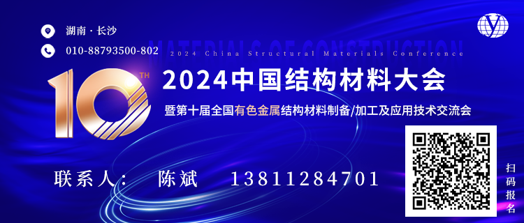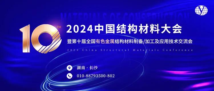 【行業(yè)會議】“2024中國結(jié)構(gòu)材料大會暨第十屆全國有色金屬結(jié)構(gòu)材料制備/加工及應(yīng)用技術(shù)交流會”將于5月24-26日在長沙召開