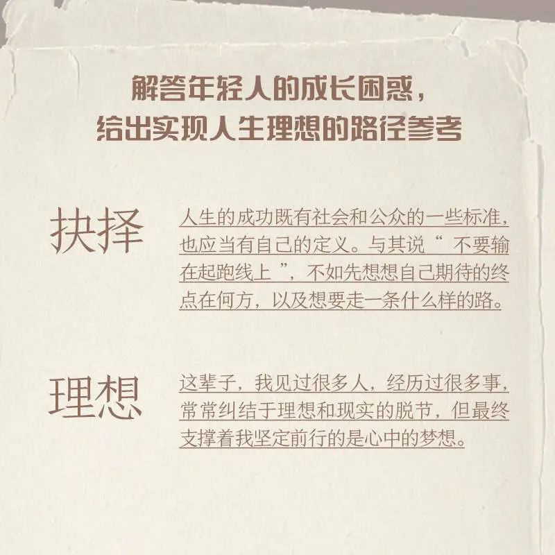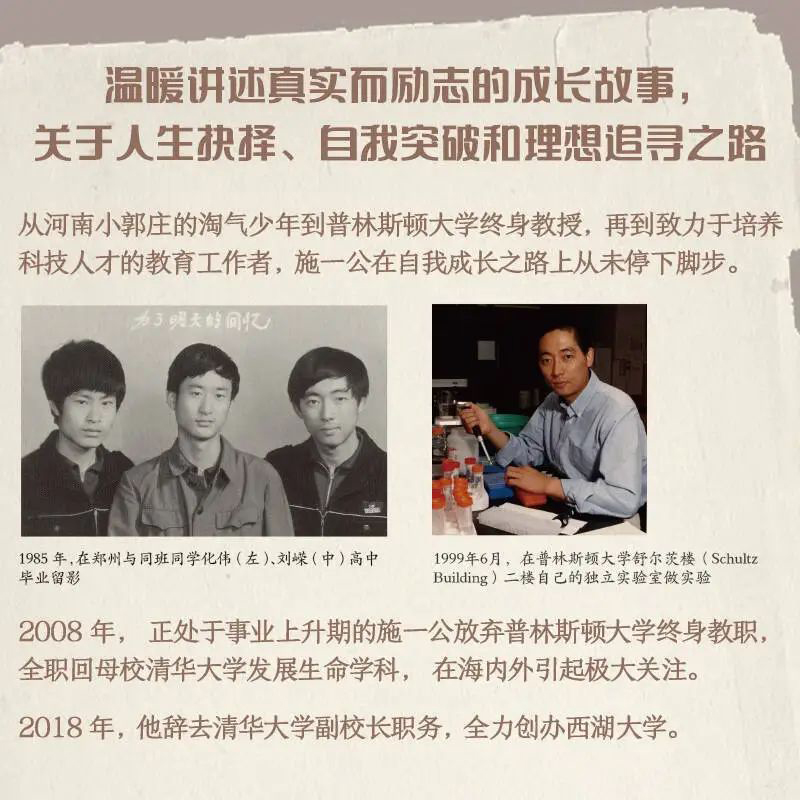 免費(fèi) 贈(zèng)書(shū) 為什么要閱讀? 因?yàn)槊恳槐緯?shū)都像一扇任意門(mén) 想去哪里,都由你自己決定 無(wú)法經(jīng)歷的人生,書(shū)籍會(huì)帶你相遇 叮!請(qǐng)查收這份「驚喜禮遇」 中鏡科儀贈(zèng)書(shū)活動(dòng)來(lái)啦! 喜歡的書(shū)友千萬(wàn)別錯(cuò)過(guò)! (文末有驚喜) 《自我突圍》 向理想前進(jìn)! 西湖大學(xué)校長(zhǎng)、中國(guó)科學(xué)院院士 作者簡(jiǎn)介 施一公 1967年出生于河南鄭州,生物學(xué)家,西湖大學(xué)首任校長(zhǎng),中國(guó)科學(xué)院院士,美國(guó)國(guó)家科學(xué)院外籍院士,美國(guó)藝術(shù)與科學(xué)院外籍院士。 1989年獲清華大學(xué)生物科學(xué)與技術(shù)系學(xué)士學(xué)位,1995年獲美國(guó)約翰斯·霍普金斯大學(xué)分子生物物理學(xué)博士學(xué)位,1998—2008年歷任美國(guó)普林斯頓大學(xué)分子生物學(xué)系助理教授、副教授、教授、講席教授,2008—2018年全職回到母校清華大學(xué)任教,曾任副校長(zhǎng)。 內(nèi)容簡(jiǎn)介 2008年,正處于事業(yè)上升期的施一公放棄普林斯頓大學(xué)終身教職,全職回母校清華大學(xué)發(fā)展生命學(xué)科,在海內(nèi)外引起較大關(guān)注。2018年,他辭去清華大學(xué)副校長(zhǎng)職務(wù),全力創(chuàng)辦西湖大學(xué)。 他在56年的人生歷程中,總是做出讓大多數(shù)人難以理解的抉擇。是什么促使他一次次突破自我?如何發(fā)揮理想的力量,實(shí)現(xiàn)人生理想的路徑又是什么?相信讀者可以在這本書(shū)中找到答案。 這是一本關(guān)于成長(zhǎng)、求學(xué)、教育、家庭、友誼、理想之書(shū),既寫(xiě)給自己,也寫(xiě)給教育科研工作者,更是寫(xiě)給青年學(xué)子,在追求理想的道路上步履不停,共同前行。 名人推薦 一個(gè)有血有肉、有情有義、有膽有識(shí)、志懷高遠(yuǎn)、行必有果的一公躍然紙上。做人當(dāng)如施一公! 韓啟德——中國(guó)科學(xué)院院士、中國(guó)科學(xué)技術(shù)協(xié)會(huì)名譽(yù)主席 這本書(shū)可以說(shuō)是西湖大學(xué)創(chuàng)校校長(zhǎng)的自傳,我們能從書(shū)中讀到新時(shí)代中國(guó)知識(shí)分子的內(nèi)心世界。 楊振寧——諾貝爾物理學(xué)獎(jiǎng)獲得者、中國(guó)科學(xué)院院士 《自我突圍》帶我們進(jìn)入了一個(gè)真實(shí)的施一公的世界,向我們展示了一個(gè)現(xiàn)實(shí)的理想主義者的自我突圍,一個(gè)當(dāng)代中國(guó)科學(xué)家的人生觀。 錢(qián)穎一——清華大學(xué)文科資深教授、經(jīng)濟(jì)管理學(xué)院院長(zhǎng)(2006-2018年) 相識(shí)一公十?dāng)?shù)年,亦兄亦友,愈久愈知,尤佩其堅(jiān)韌。一公在我心中是一位奮進(jìn)不息的理想主義者,這種理想主義體現(xiàn)在他的科研取向,也貫穿于他看待人生的視角。從他的成長(zhǎng)經(jīng)歷中,我們不僅可以從多個(gè)層面了解其人,更可以感知當(dāng)代中國(guó)科學(xué)家的探索精神和執(zhí)著追求。 潘建偉——中國(guó)科學(xué)院院士、中國(guó)科學(xué)技術(shù)大學(xué)常務(wù)副校長(zhǎng) 一公校長(zhǎng)的這本書(shū)既是一部成長(zhǎng)史,也是一部思想史,成長(zhǎng)的故事豐滿(mǎn),思想的歷程精彩,堪稱(chēng)一劑擺脫迷茫焦慮、實(shí)現(xiàn)自我驅(qū)動(dòng)的良藥,學(xué)生、家長(zhǎng)和教育工作者讀了,一定會(huì)在有意思和有意義中收獲滿(mǎn)滿(mǎn)。 劉彭芝——中學(xué)特級(jí)教師、人大附中、人大附中聯(lián)合總校原校長(zhǎng)、現(xiàn)名譽(yù)校長(zhǎng) 西湖大學(xué)寄托了太多人對(duì)更好教育的理想,作為領(lǐng)頭人的施一公也是一位理想主義者,但西湖大學(xué)畢竟剛剛出發(fā)不久,它的未來(lái)會(huì)是什么樣?或許我們可以從過(guò)去到現(xiàn)在的施一公身上找到一些答案,這本書(shū)就是一把鑰匙。 白巖松——央視主持人、資深新聞評(píng)論員 凡益之道,與時(shí)偕行。與一公結(jié)識(shí)已久,他的經(jīng)歷為不忘初心、砥礪前行、創(chuàng)新探索做了生動(dòng)的注腳。這本書(shū)的心路歷程,相信能夠鼓勵(lì)更多年輕人點(diǎn)亮心中燈塔,不斷突破自我,玉汝于成,在成長(zhǎng)路上有所收獲。 張磊——高領(lǐng)集團(tuán)創(chuàng)始人兼首席執(zhí)行官 聯(lián)系我們 公司官網(wǎng):m.asvenus.cn 免費(fèi)熱線/企業(yè)QQ:400 001 9621 市場(chǎng)部郵箱:zjky@emcn.com.cn 官方商城:http://www.emcn.net.cn/ 地區(qū)負(fù)責(zé)人聯(lián)系方式 北京地區(qū):張經(jīng)理 18642002287 南京地區(qū):鄭經(jīng)理 15050567596 廣州地區(qū):鄭經(jīng)理 13724052586 西安地區(qū):馬經(jīng)理 13324587366 沈陽(yáng)地區(qū):王經(jīng)理 15140221479 鄭州地區(qū):唐經(jīng)理 15237816868